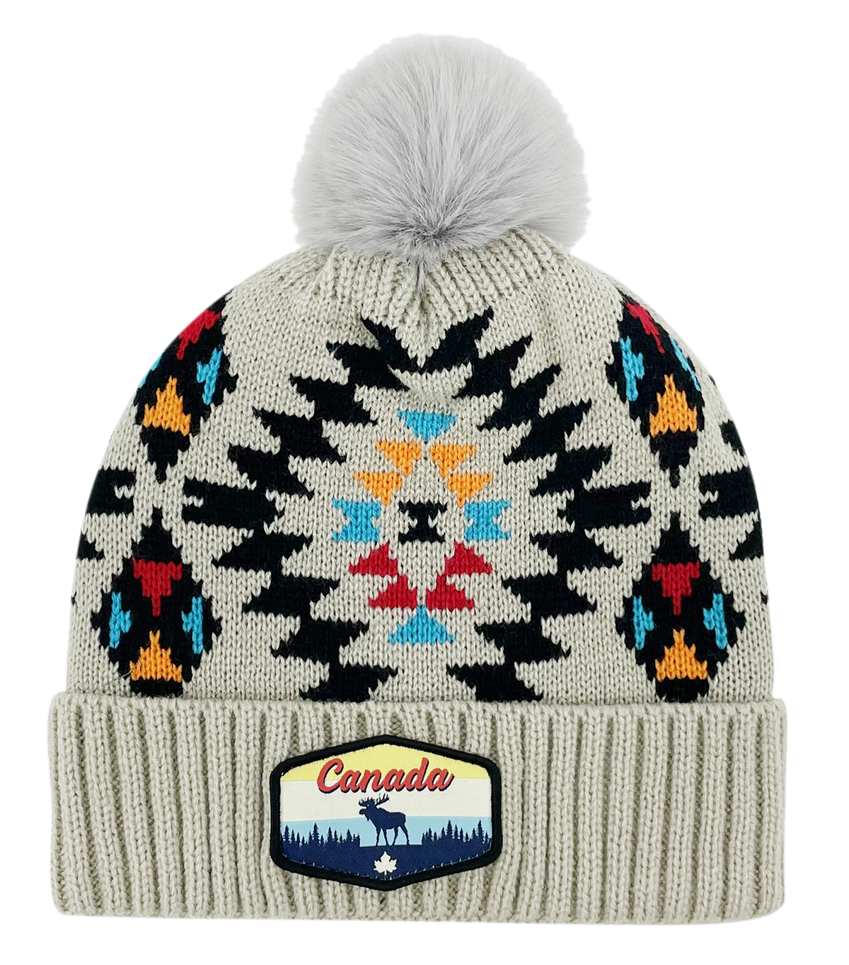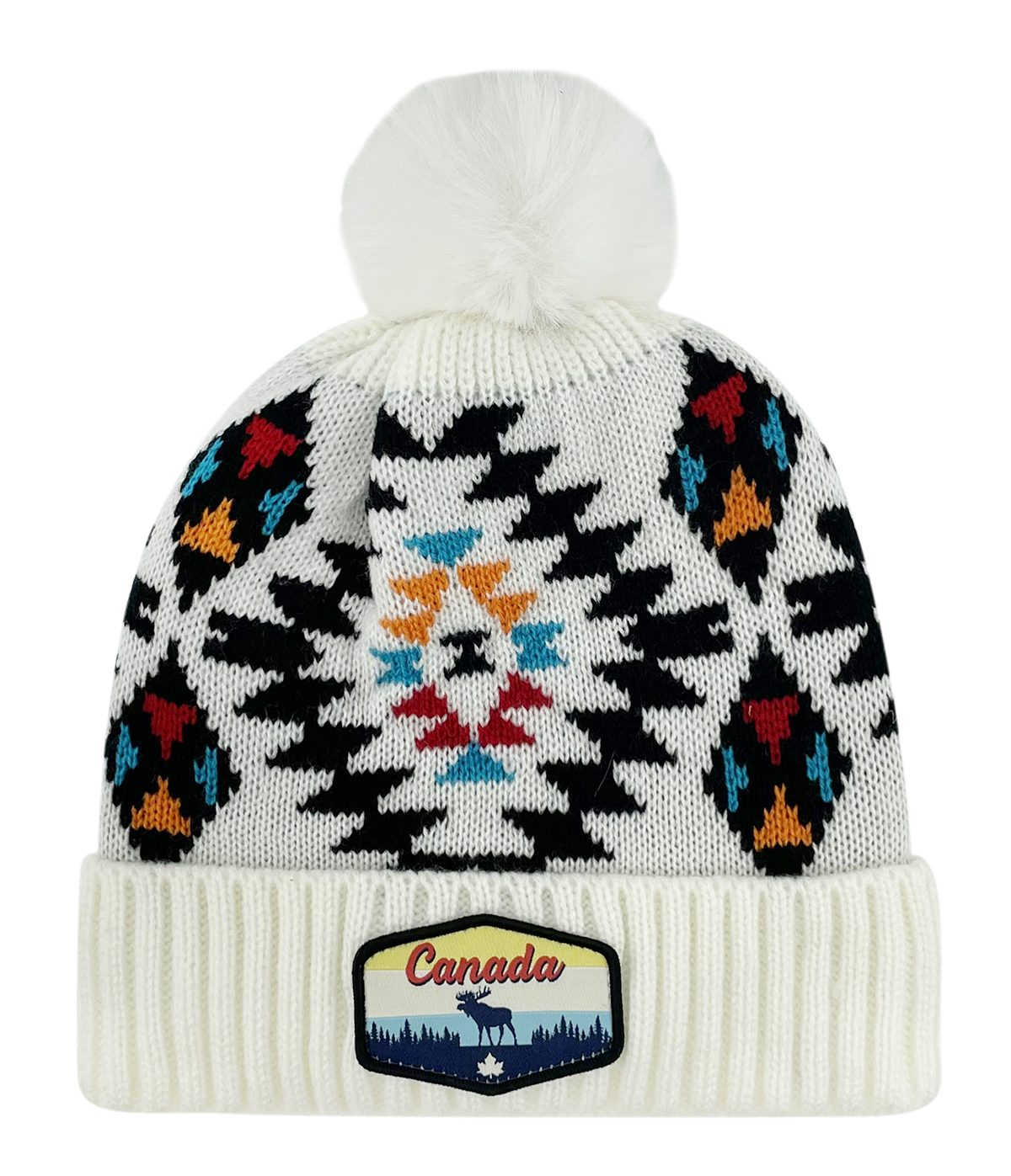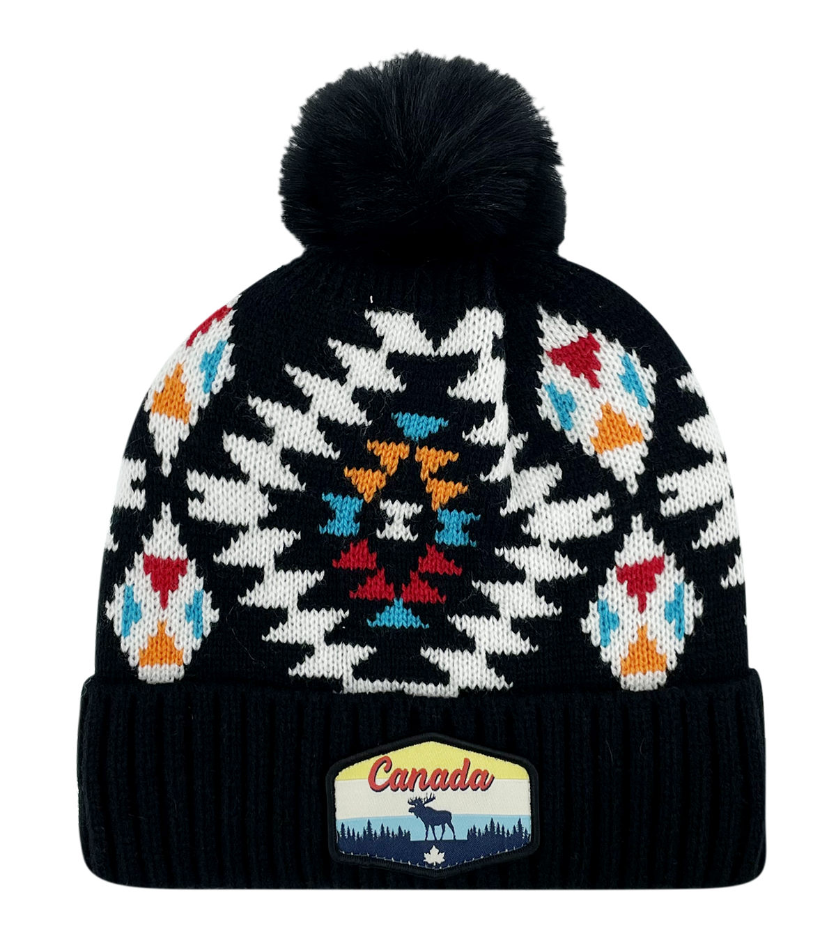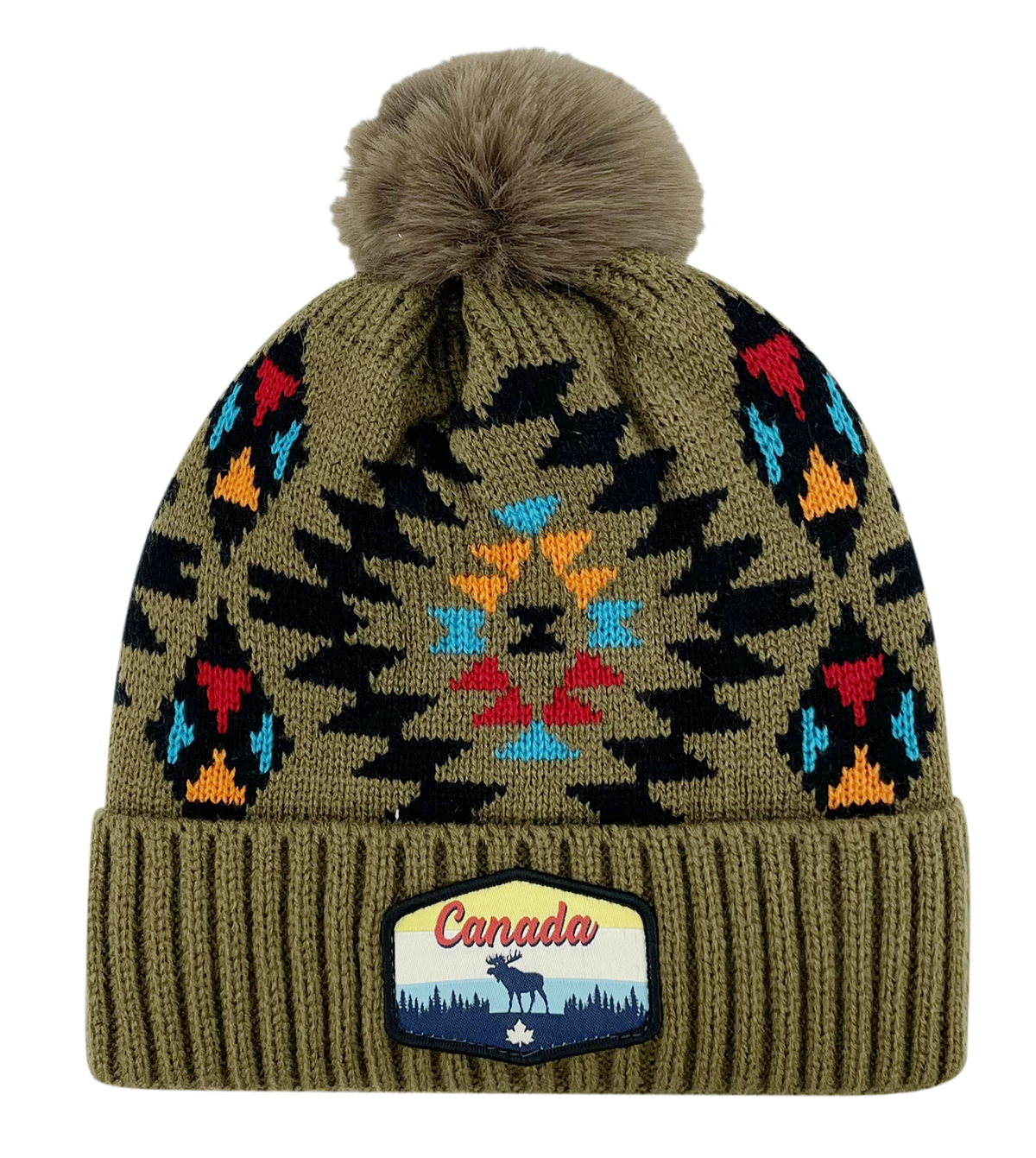 Canada Knit Toque Native/Navajo Pattern with Pom w/ Woven Patch