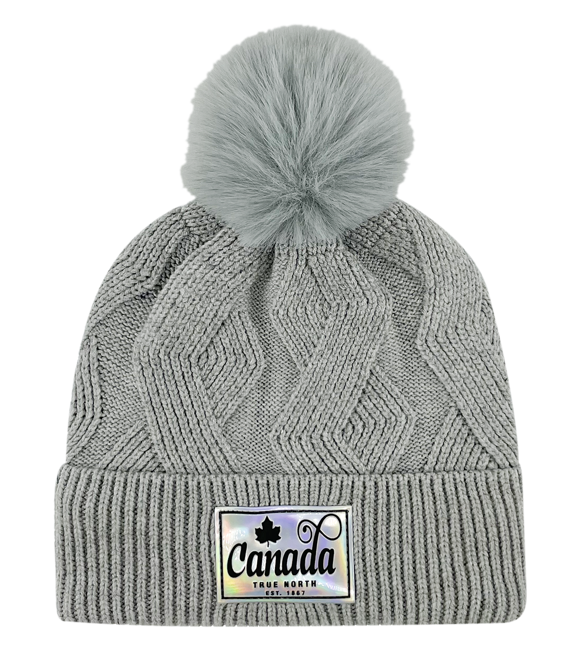 Knit Toque with Pom w/ Metallic Canada Patch